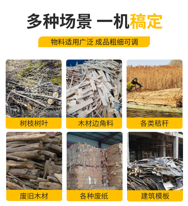 木材綜合破碎機(jī)主要用于各種木材原料的破碎工作。不管是建筑工地上的建筑模板,竹膠板,木頭邊角料,腳手架都可以輕松破碎。